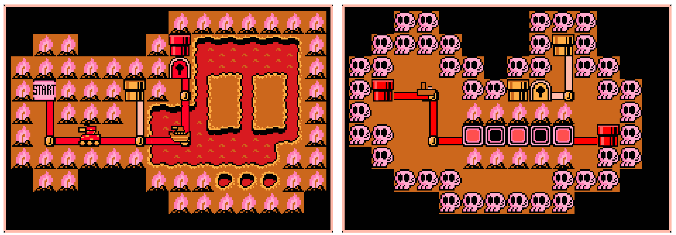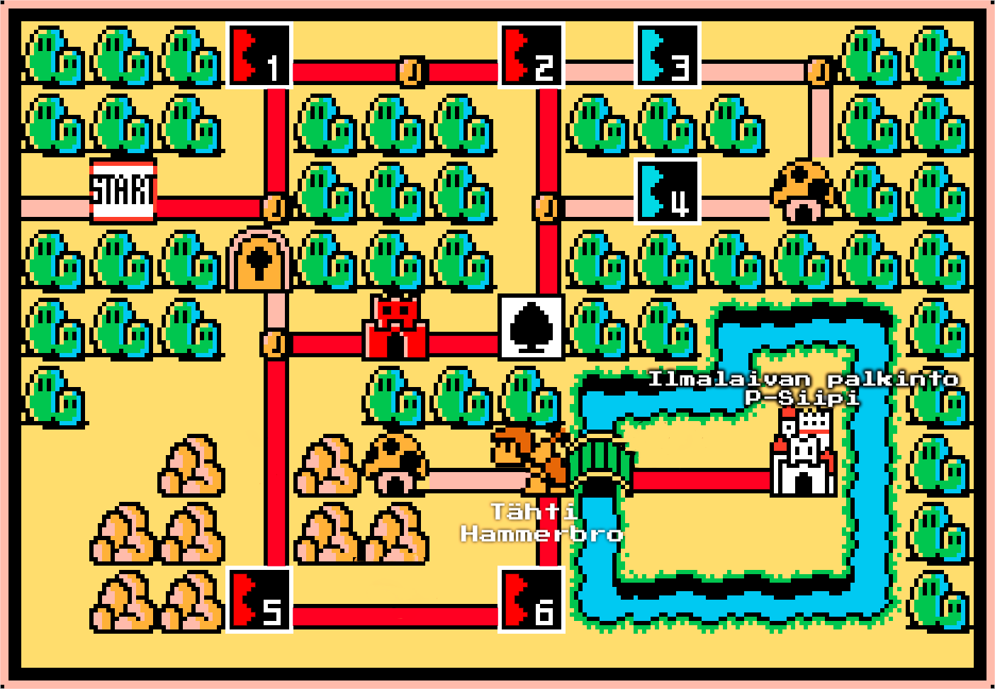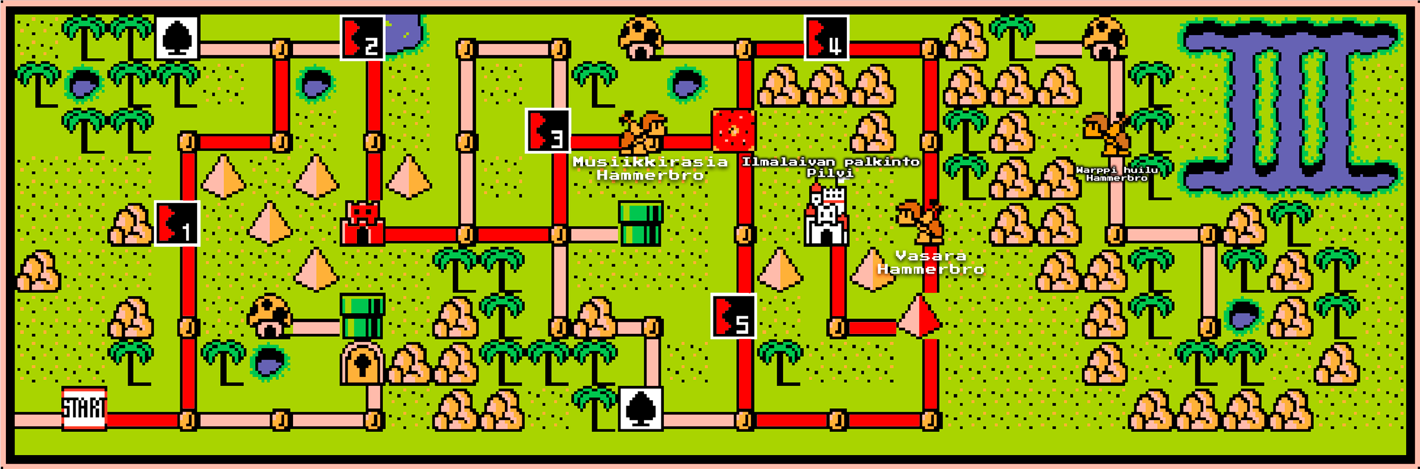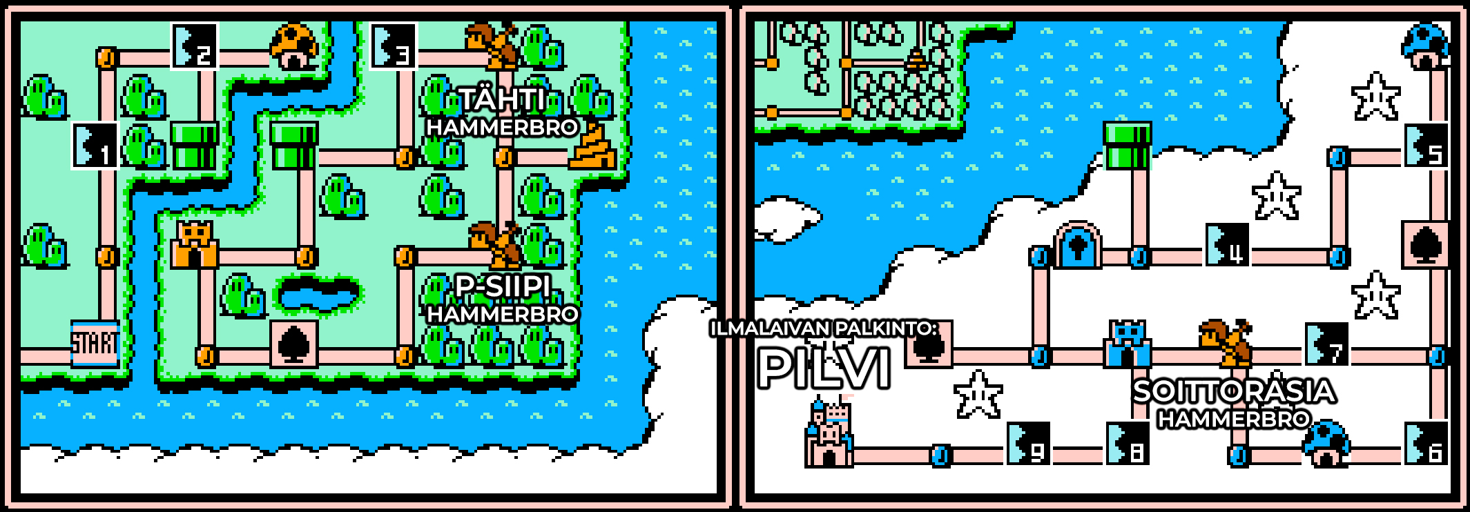 jokaisen kentän jälkeen. Jos pelaa punaisella merkityt kentät ja taistelee molempia vasaraveljiä vastaan, silta joka
