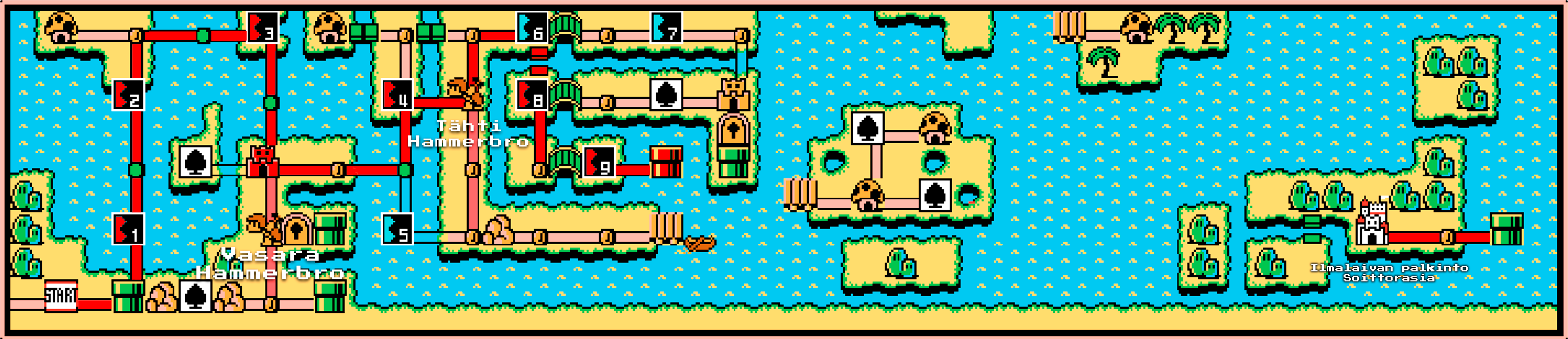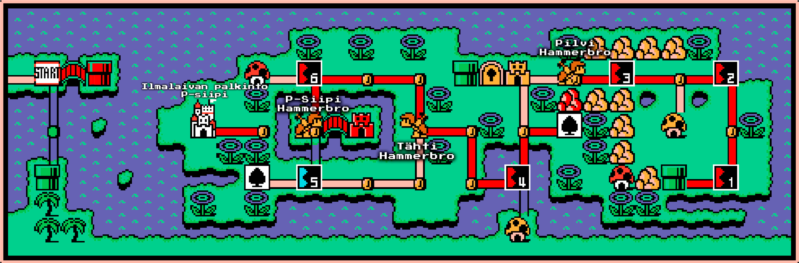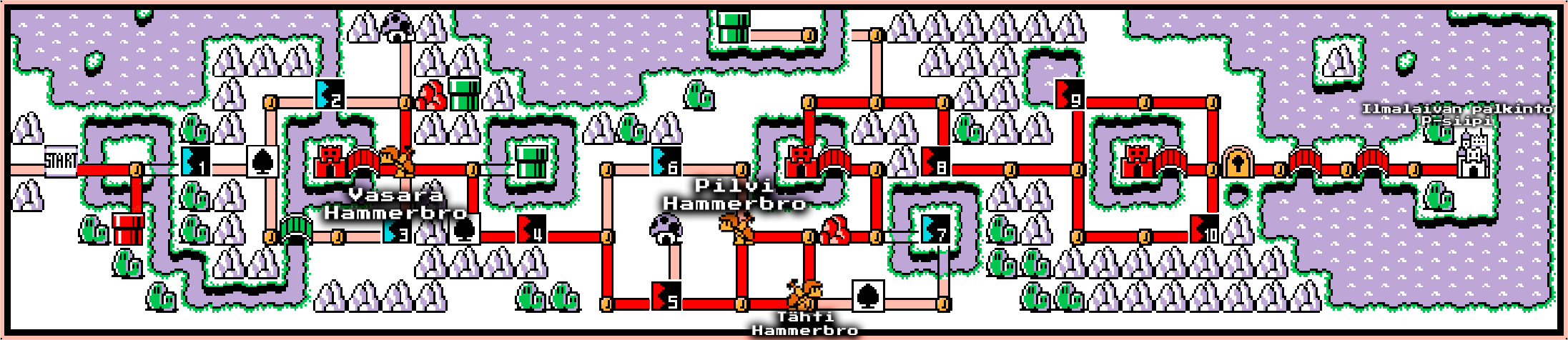 Ykkösmaailmassa ei ole erityisiä haasteita routen osalta. Hammerbro on pakko taistella, mutta kenttien osalta ei ole erityisiä huomioitavia asioita.